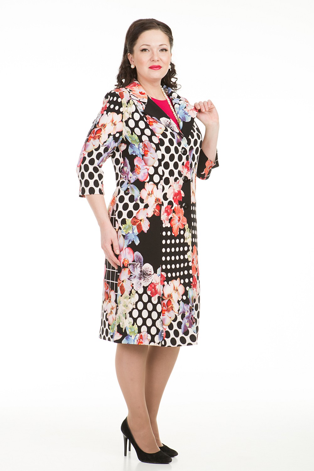 Праздничное, нарядное пальто- жакет из новой коллекции "Соблазнительная весна". Прямого силуэта, шалевый воротник, рукав 3/4, застежка пуговицы. Отлично комплектуется с брюками, юбками, брюками 7/8, однотонными платьями из коллекции "Соблазнительная весна"