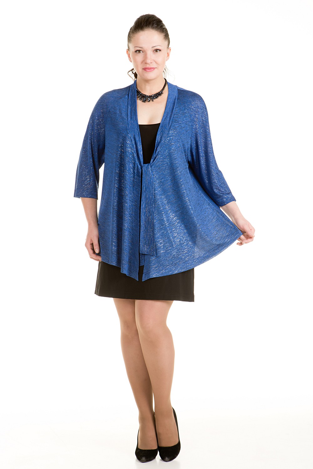 Блуза-туника из красивого меланжевого трикотажного полотна с металлизированной нитью - прекрасный вариант к празднику (черного и ярко-синего цветов). Такое изделие можно носить с платьем -футляром, юбкой,брюками. Свободного кроя блуза прекрасно подходит для большого размера: рукав реглан, отсутствие фиксированной застежки, длина ниже линии бедра. Добавьте к такому образу блестящий топ или яркое украшение - и вы готовы встречать самый любимый праздник Новый год! Размеры сдвоенные (52-54, 56-58, 60-62, 64-66, 68-70, 72-74)