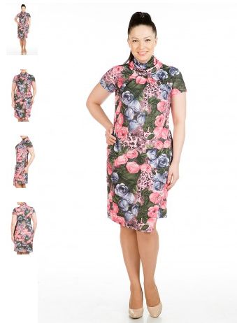 Трикотажное платье с красивым цветочным принтом, горловина выполнена в виде свободной стойки-хомутика, втачной рукав, выточки переведены в мягкие драпирующиеся складки,перед юбки выполнен в виде юбки с запахом. Удобное и практичное, такое платье обязательно понравится покупательницам в преддверии весны!